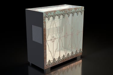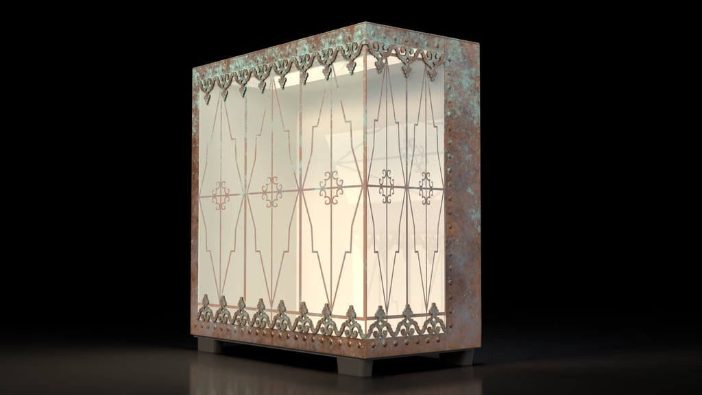 A custom computer chassis concept inspired by traditional lanterns, glasswork, and architectural elements. The design explores how the forms of old-fashioned lanterns can be combined with the modern panel structure of an H9 Elite computer case, leaving room for internal lighting and custom builds. The project includes both the original case design and textures, as well as the full 3D model of the H9 Elite chassis. Inspired by a love of lanterns and the sense of history and atmosphere they evoke.