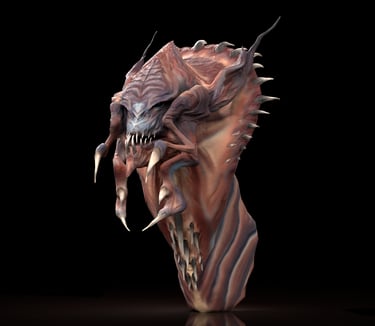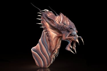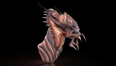 Inspired by a lifelong love of fantasy, dragons, and adventure stories. The stylized dragon sculpt is meant to explore shape language, surface detail, and hand-painted textures. Intended to translate a 2D Concept into a 3D fully realized 3D sculpt,including the development of color patterning to support the final design.