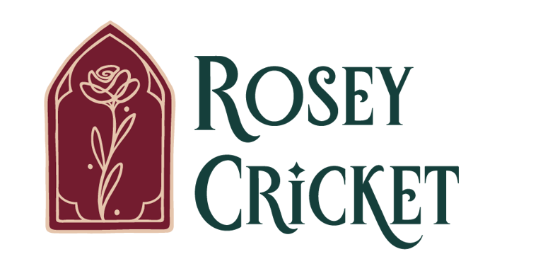 The Rosey Cricket identity draws inspiration from storybook elements, balancing whimsy with sophistication. Architectural motifs inspired by cathedral windows create a sense of space and time, giving the identity a structured and enduring presence, grounded in environments meant to inspire awe and imagination. Intentional hand-drawn details, including the signature rose motif, keep the brand grounded and tactile, reinforcing its artisan, handcrafted nature.